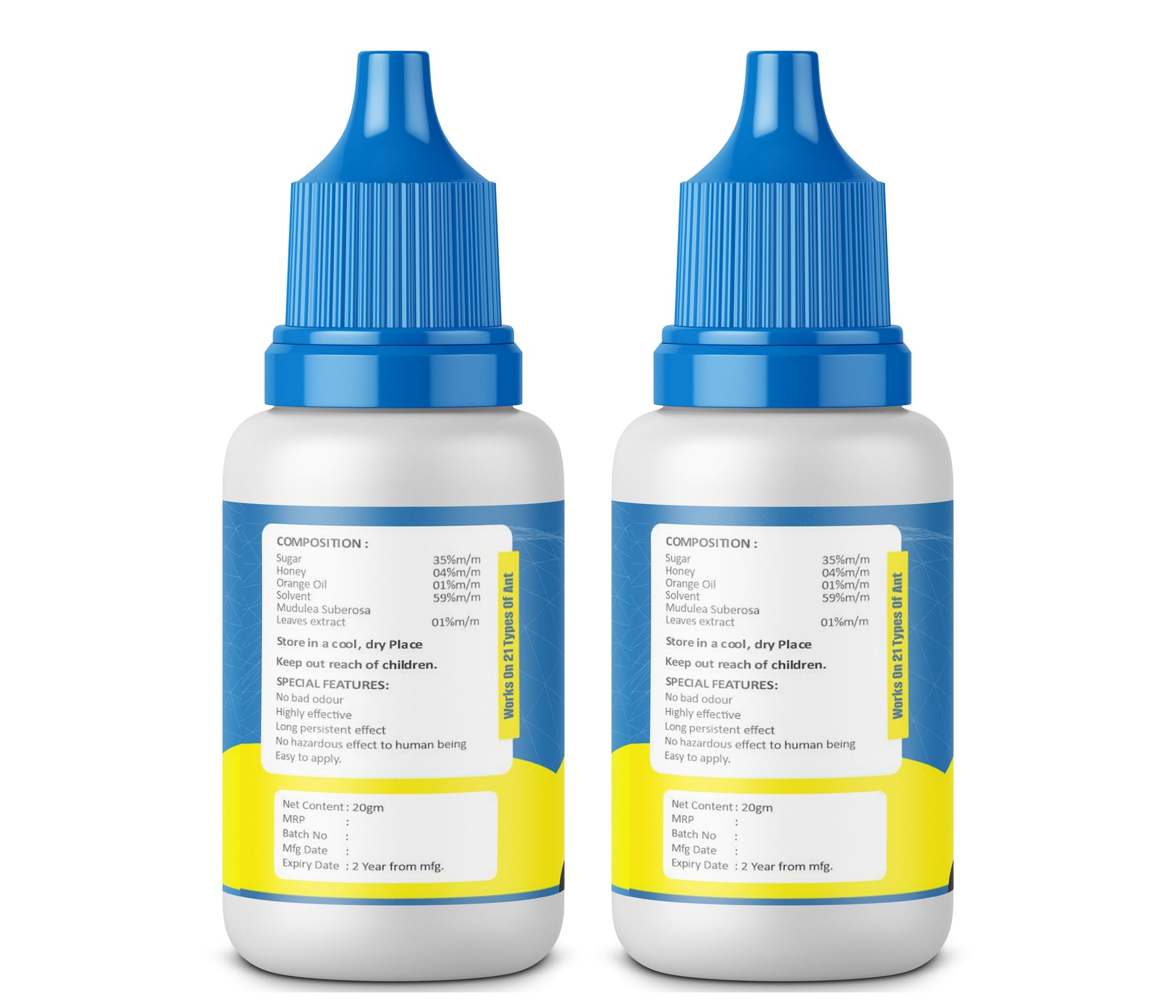 ABSOULTELY HERBAL : made with selected natural ingredients such as sugar, honey, orange oil and leaves extracts, it becomes herbal shade for your home against ants.