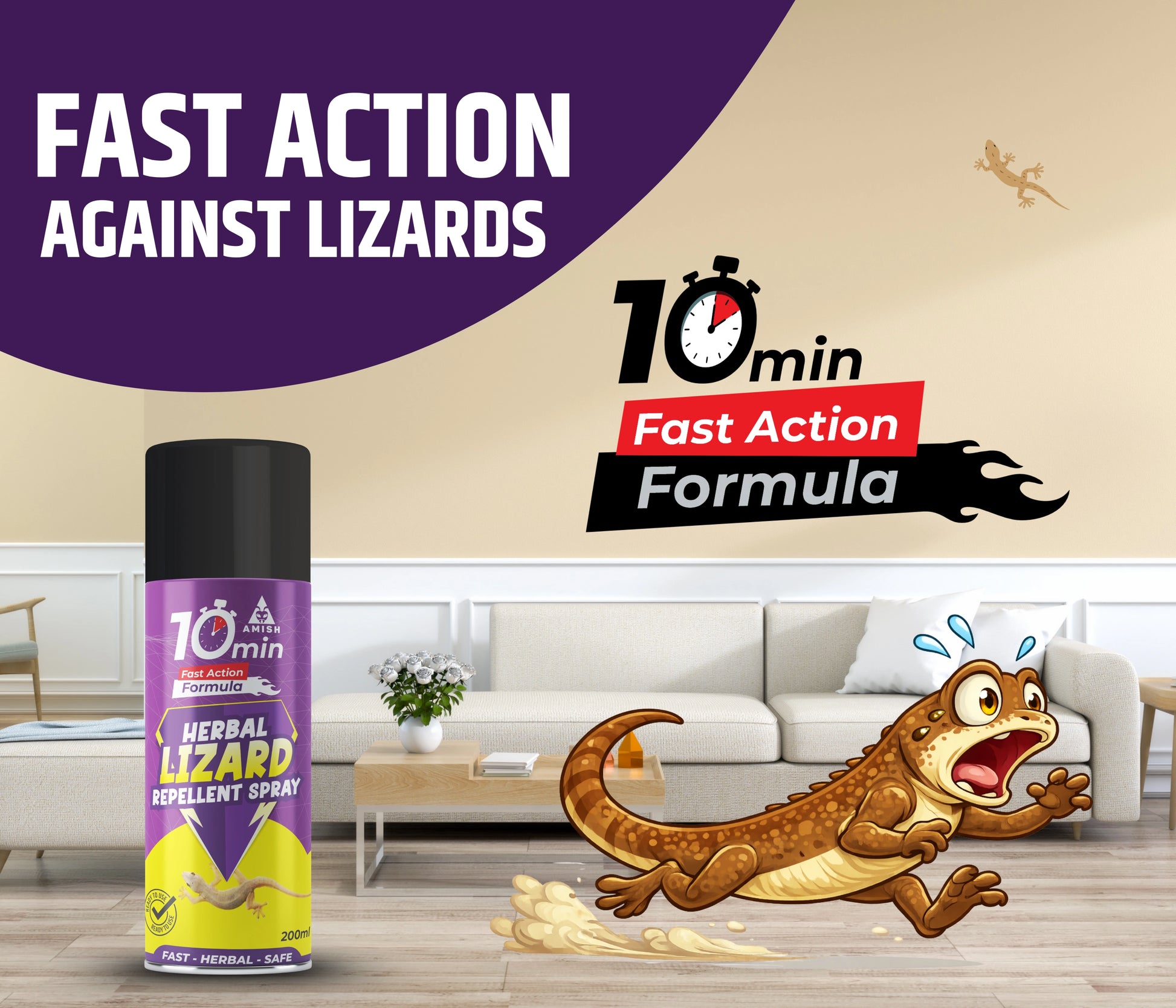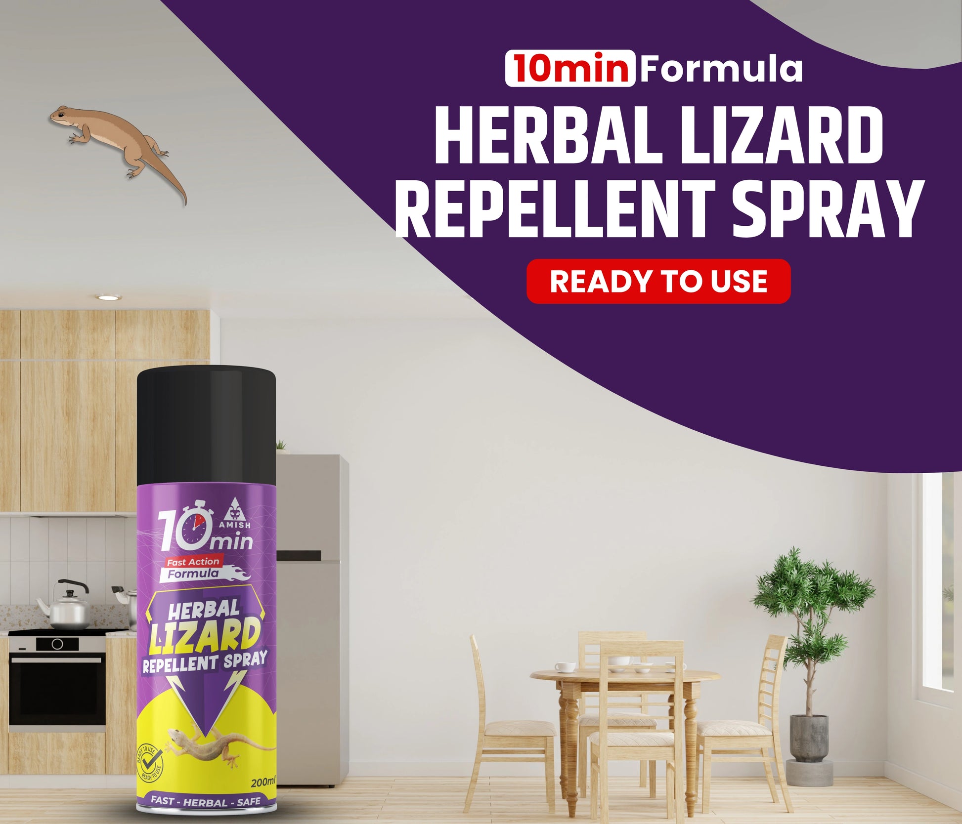 Lizards can be a nuisance, especially when they invade our homes and disrupt our comfort. These reptiles are often attracted to the warmth and food sources within our living spaces, and their presence can be unsettling. To combat this issue, the lizard spray offers a robust solution. Formulated with a blend of natural plant extracts, this herbal lizard repellent spray provides a safe and eco-friendly method to keep lizards at bay. It functions as a powerful lizard control for home environments, offering an effective way to eliminate these insects. The spray acts quickly, delivering instant results and making it a reliable choice for immediate relief. Its odorless nature ensures that you can use it comfortably without dealing with unpleasant smells. The convenient spray bottle allows for easy application on various surfaces, including plants and home interiors. The lizard spray creates a long-lasting barrier that repels lizards, providing extended protection and a permanent solution for lizard control. With its natural ingredients and versatile use, it stands out as a top choice for anyone looking for a safe, effective, and eco-friendly lizard control.