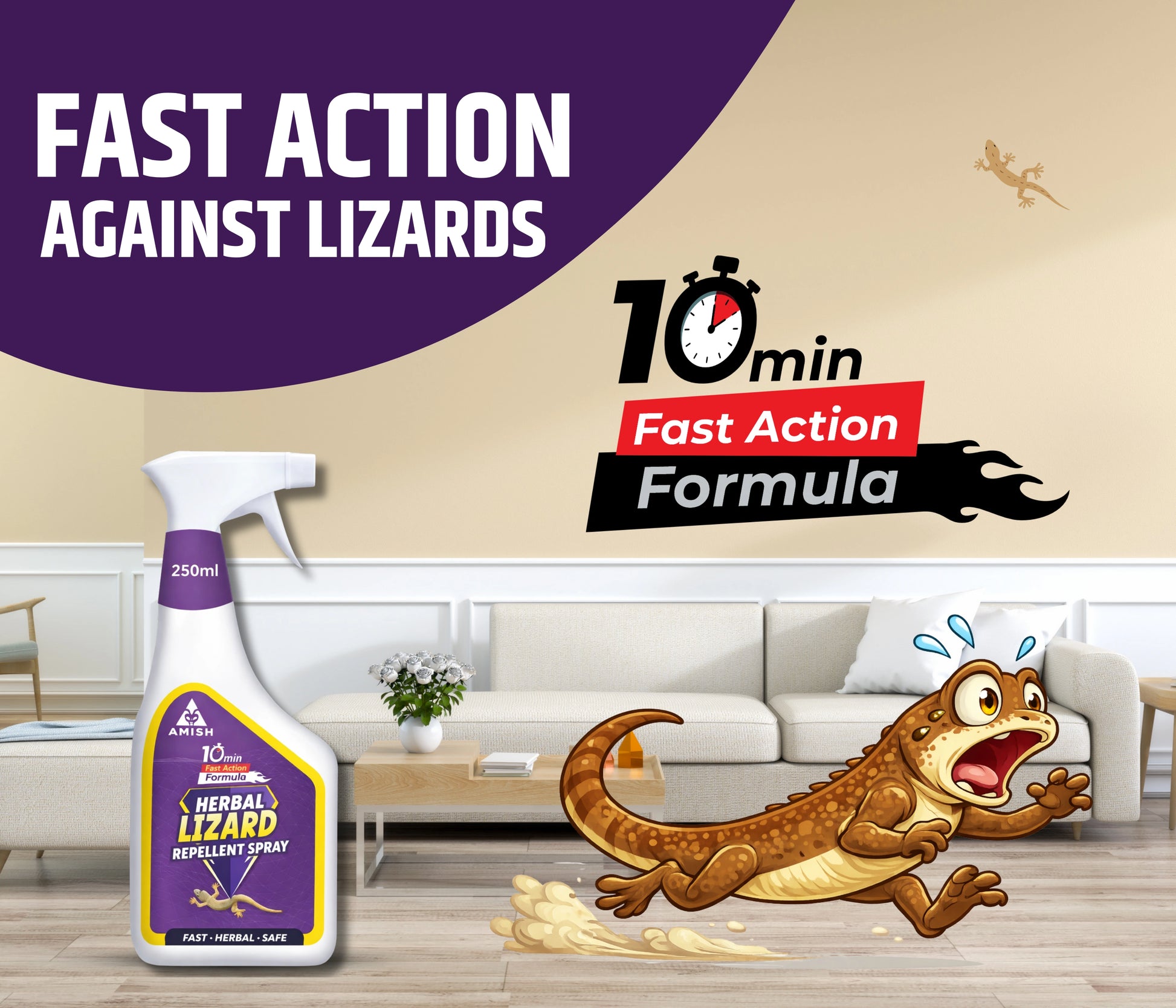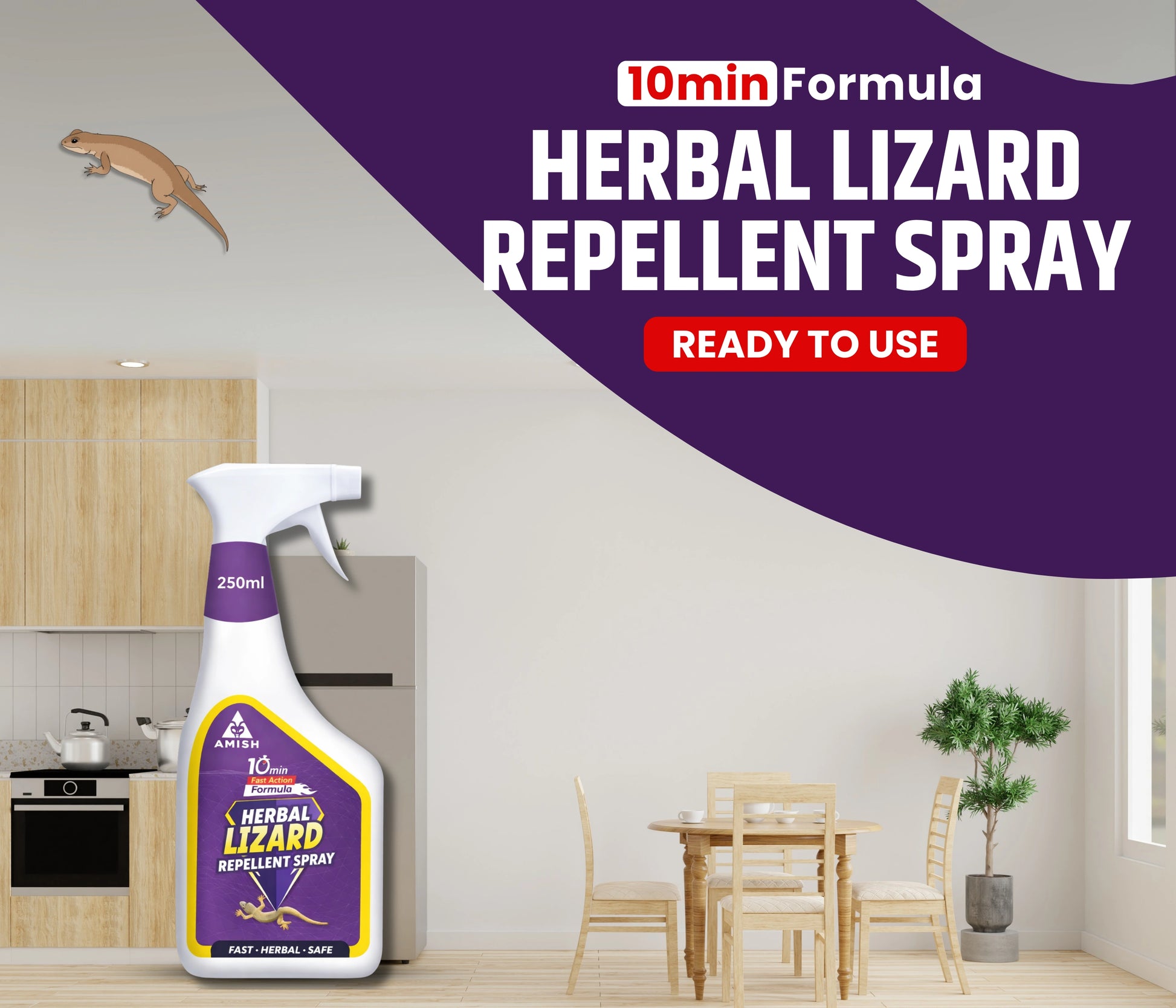 Lizards can be a nuisance, especially when they invade our homes and disrupt our comfort. These reptiles are often attracted to the warmth and food sources within our living spaces, and their presence can be unsettling. To combat this issue, the lizard spray offers a robust solution. Formulated with a blend of natural plant extracts, this herbal lizard repellent spray provides a safe and eco-friendly method to keep lizards at bay. It functions as a powerful lizard control for home environments, offering an effective way to eliminate these insects. The spray acts quickly, delivering instant results and making it a reliable choice for immediate relief. Its odorless nature ensures that you can use it comfortably without dealing with unpleasant smells. The convenient spray bottle allows for easy application on various surfaces, including plants and home interiors. The lizard spray creates a long-lasting barrier that repels lizards, providing extended protection and a permanent solution for lizard control. With its natural ingredients and versatile use, it stands out as a top choice for anyone looking for a safe, effective, and eco-friendly lizard control.