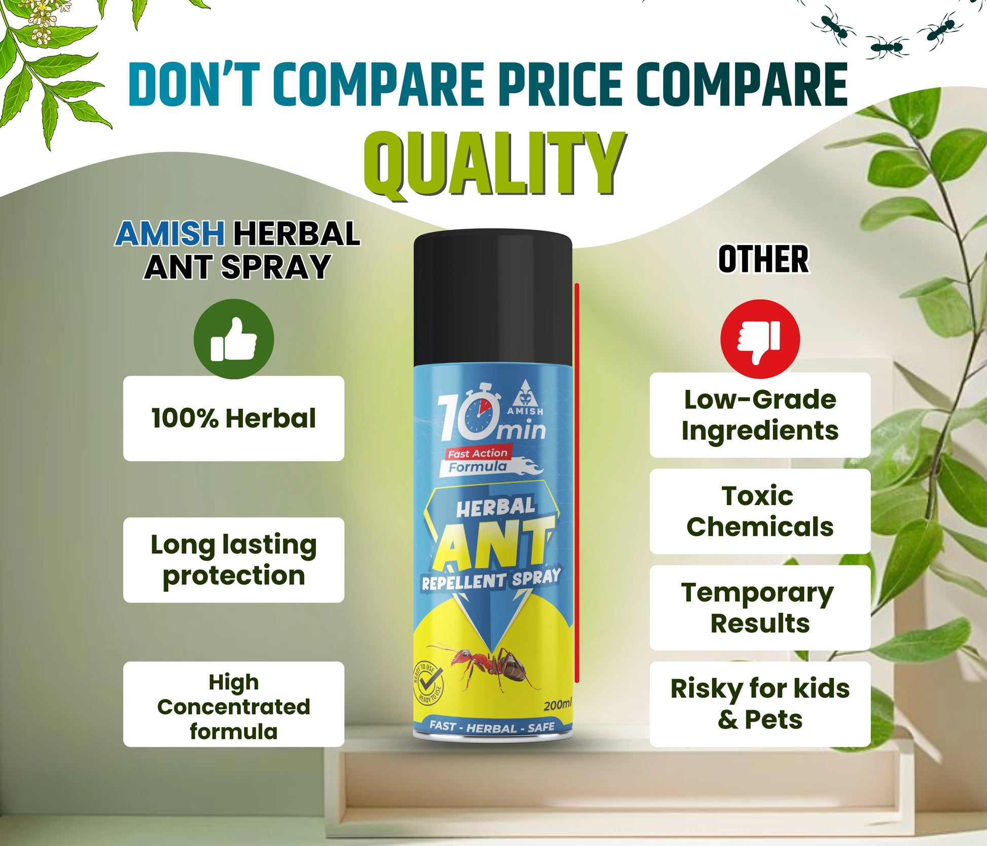 Protect your home from unwanted ant intruders with Amish Ant Repellent. Our powerful yet natural formula effectively repels ants, creating a shield around your living space. Crafted with plant-based ingredients, it's safe for families and pets. Enjoy rapid results with our easy-to-use spray. Simply target areas where ants are present for optimal effectiveness. The odorless formula ensures a pleasant experience while safeguarding your home. For long-lasting protection, apply our repellent regularly to prevent ant re-entry. Ideal for kitchens, bedrooms, and other indoor spaces, it creates a lasting barrier against these ant. Experience the peace of mind that comes with an ant-free home. Key Benefits: Effective ant repellent Safe for families and pets Odorless and easy to use Long-lasting protection Natural ingredients Choose Amish Ant Repellent for a harmonious and ant-free living space.