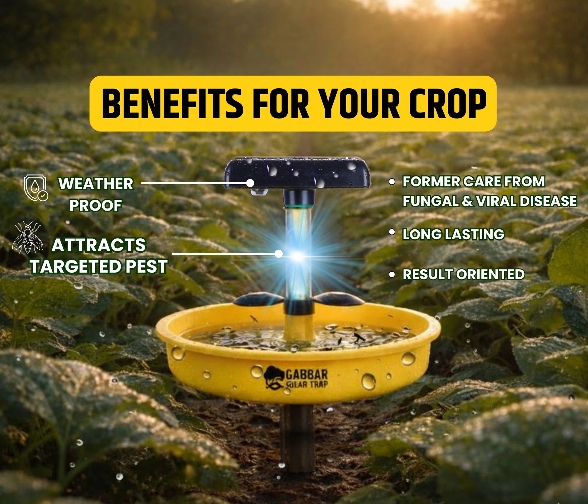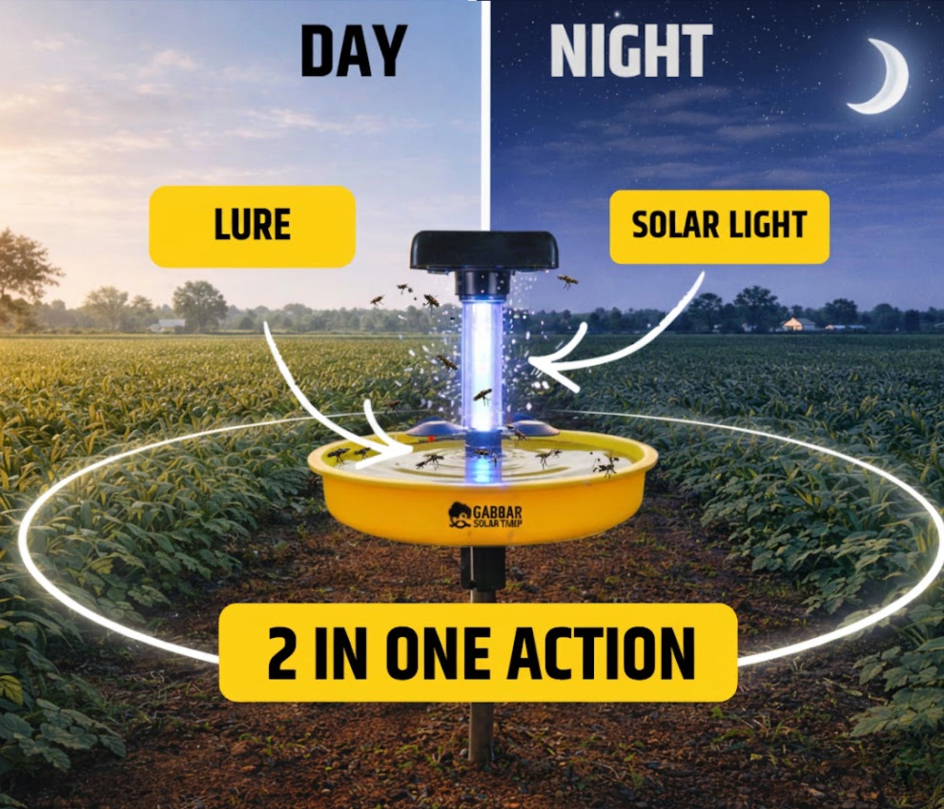 ➡️Gabbar Solar Trap – Advanced solar insect trap designed for farms, agricultural fields, outdoor gardens, and home use, powered by a high-efficiency solar panel with rechargeable battery for chemical-free pest control, ideal as a solar light insect killer machine.