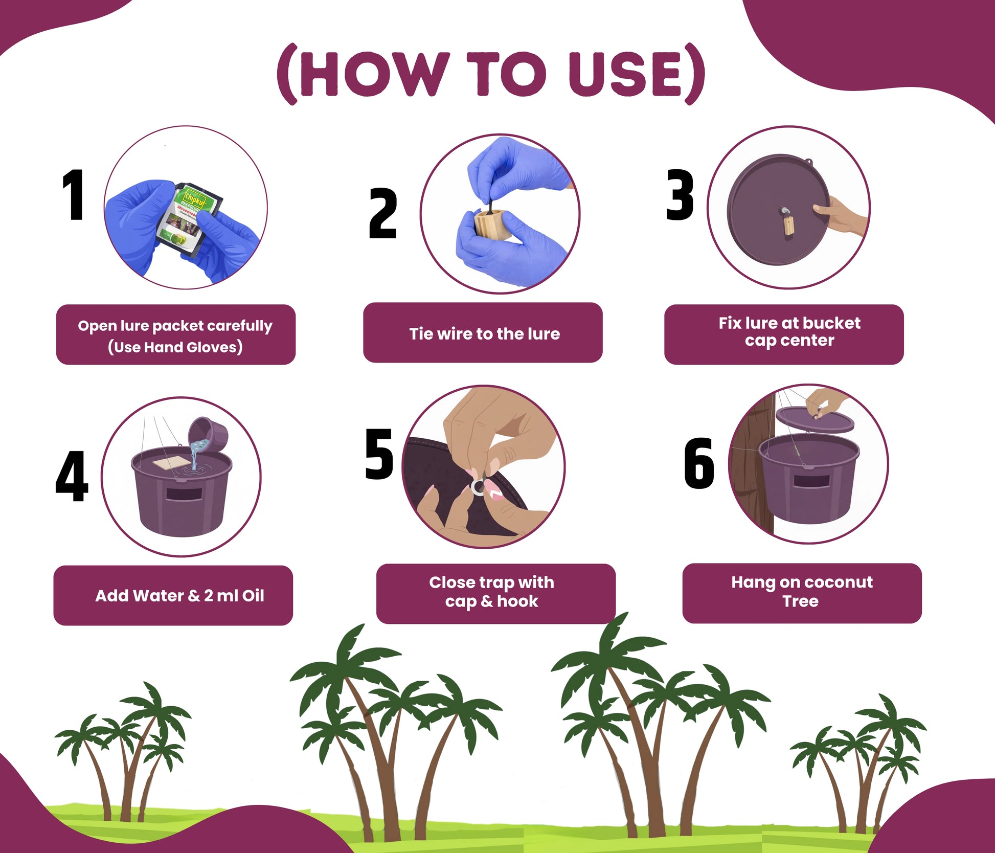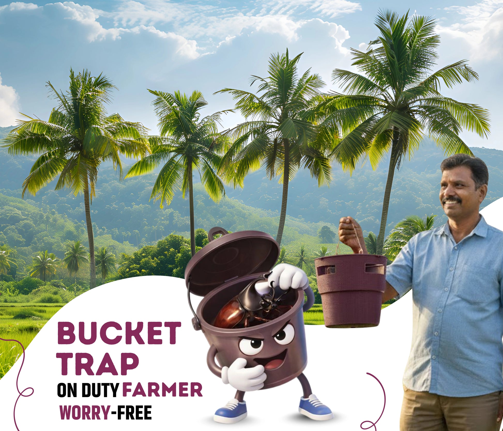 ➡️ Effective Control of Rhinoceros Beetle ➡️ Specially designed to control Rhinoceros Beetle (Oryctes rhinoceros), a major pest of coconut trees, oil palm, areca palm, areca nut, and date palm crops. ➡️ Powerful Pheromone-Based Attraction Uses a strong pheromone lure that attracts targeted beetles into the bucket trap, preventing damage to valuable crops without using harmful chemicals. ➡️ Eco-Friendly & Organic Farming Safe Ideal for organic and chemical-free farming practices. Controls pests without affecting beneficial insects or pollinators. ➡️ Long-Lasting Protection (Up to 60 Days) The pheromone lure remains active for up to 60 days, providing continuous and reliable beetle control. ➡️ Prevents Crop Damage & Disease Spread Helps reduce beetle infestation and prevents the spread of plant diseases commonly caused by Rhinoceros beetles in coconut and palm plantations. ➡️ Cost-Effective Pest Management Solution Reduces dependency on expensive chemical sprays and insecticides, lowering overall crop protection costs. ➡️ Easy to Install & Maintain Simple setup with minimal maintenance. Hang the bucket trap on coconut or palm trees for hassle-free insect control. ➡️ Recommended Installation Height For best results, hang the trap 120 cm (4 feet) above ground level on coconut, palm, or similar trees. ➡️ Selective Trapping Targets only Rhinoceros beetles without harming non-target or beneficial insects. ➡️ Suitable for Multiple Crops Effective for coconut, oil palm, date palm, areca nut, and other palm-based crops. |